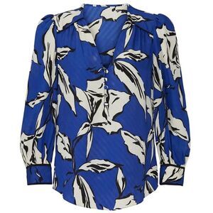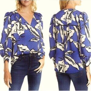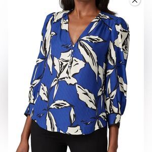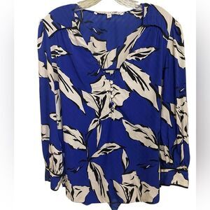 Veronica Beard SZ 14 Milan Blue Floral Jacquard Silk Blend Blouse Quiet Luxury Office Siren Boho Femme