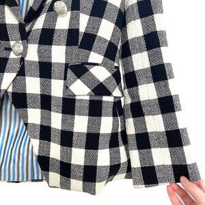 Veronica Beard Miller Dickey Tweed Blazer Black White Gingham Double Breast Sz 0