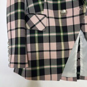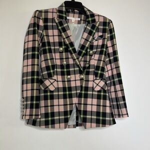 Good condition. True color shown in last photo. Size 2. Blogger / celebrity favorite. Worn by Josephine Langford. Black and pink with some yellow and green. Preppy business casual NYC fall winter spring classic. Double breast buttons.