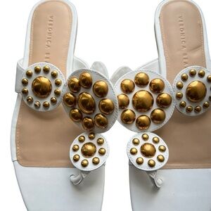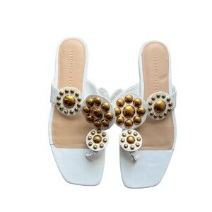 Veronica Beard - Minari Slip On T Strap Embellished Slide Sandals Sz 8