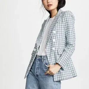 Veronica Beard Moroso Dickey Double Breasted Lapel Blazer Blue White 2