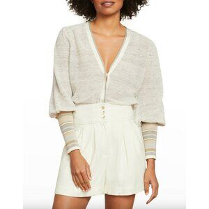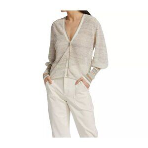 Veronica Beard Mott Linen Cardigan Oatmeal Neutral Sporty Striped Cuff Preppy XS