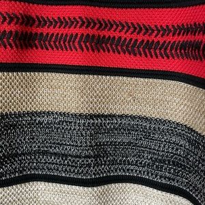 Preowned multi color sweater in a size small. Please note that the fabric tag is missing. There’s a micro small fabric pull see second picture otherwise in excellent preowned condition.