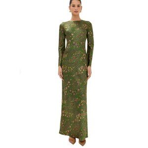 This Veronica Beard Gemma maxi dress is crafted from a stretch silk blend and features an elegant floral print, gently tapered cuffs, and a tie-back design.