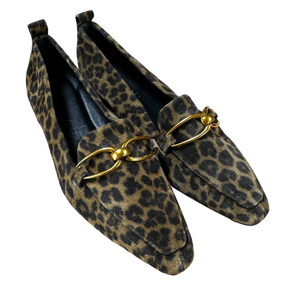 Veronica Beard NWOB Champlain Chain Leopard Suede Loafer Size 5M Gold Vamp