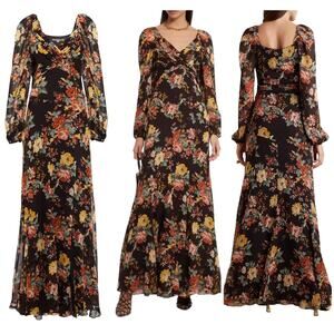 Veronica Beard NWT Avani Floral Print Silk Maxi Dress Size 0 Chiffon Long Sleeve