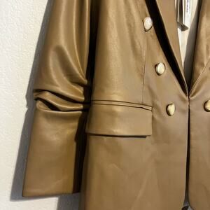 Veronica Beard NWT Beacon Faux Leather Dickey Jacket Khaki Vegan Leather 6