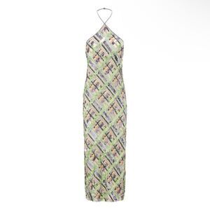The Cherie is a statement-maker, thanks to its sleek halter neckline and all-over checked sequin body. The pastel palette and delicate beadwork make it the perfect choice for spring