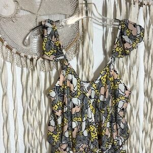 Yellow peach white and black floral print