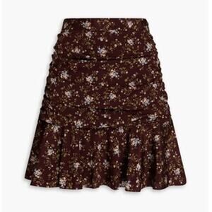 Veronica Beard NWT Merlot Multi Floral Print Taras Silk Ruched Mini Skirt Size 4