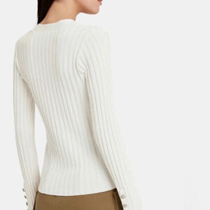 Veronica Beard NWT West Ribbed V Neck Pullover in Off-White Size Medium