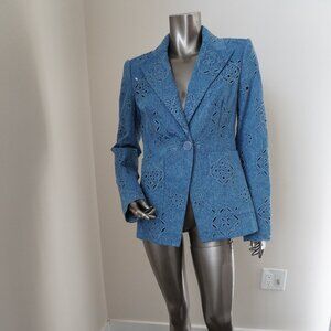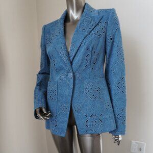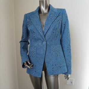 Veronica Beard Naira Denim Jacket Blue Eyelet Embroidery Cotton Size 2