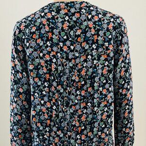 Veronica Beard Navy Blue Floral Patterned Pleated Drop Waist Silk Dress, Size 2