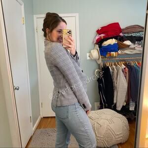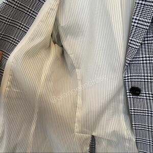 I absolutely adore this stunning high end designer Veronica Beard navy blue and white striped plaid one button dickey blazer jacket