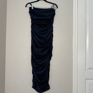 Veronica Beard Navy Kupa Strapless Ruched Silk Dress, Wedding Guest, size 2