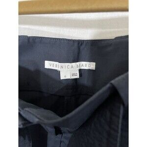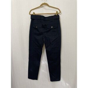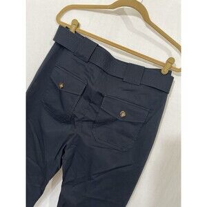 Elevate your wardrobe with these stylish Veronica Beard ankle pants in a chic navy blue color. Crafted from high-quality cotton material, these pants are perfect for any occasion, whether it's for travel, party/cocktail, formal events, workwear, or even for a festival, beach, college, city, or preppy events. The pants feature a zip button tie closure, a high-rise waist, and a straight leg style with a 26-inch inseam and 30-inch waist size.