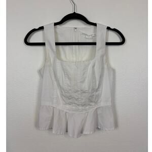 Veronica Beard Nikolette Square Neck Peplum Pleated White Blouse 0
