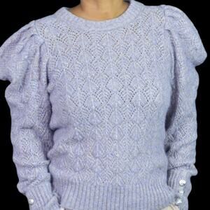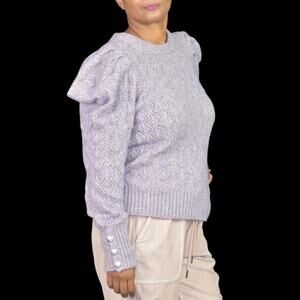 Veronica Beard Novah Pointelle Sweater Purple Pullover Puff Sleeve Alpaca Medium