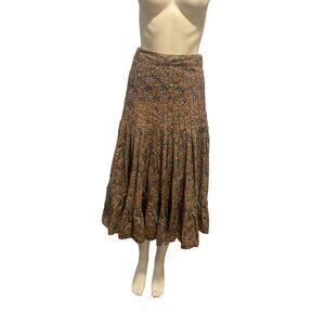 This pleated midi-skirt is cut in a tiered silhouette with mixed paisley and floral prints. Concealed back zip Pull-on style 100% cotton Dry clean Imported SIZE & FIT About 33" long