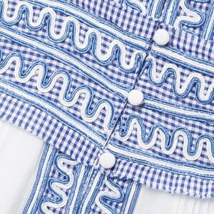 Veronica Beard's 'Pasha' dress is designed with such fun and interesting details, from the gingham trims to the intricate ric rac. Made from lightweight cotton and linen-blend, it has voluminous sleeves tapered by structured cuffs and neat pintucks throughout. Style it with strappy sandals and an oversized tote.