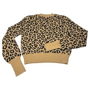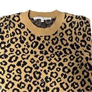 Veronica Beard Penny Sweater, Veronica Beard Leopard Print Sweater, Veronica Beard Animal Print Knit, Veronica Beard Cropped Puff Shoulder Sweater, Veronica Beard XS Wool Sweater, Statement