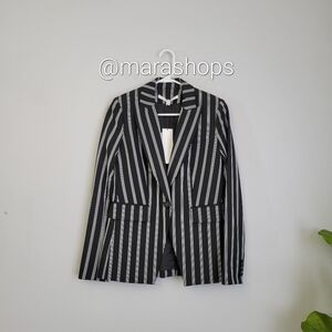 Features long sleeves with button cuffs, flap pockets, single front button closure, lined.