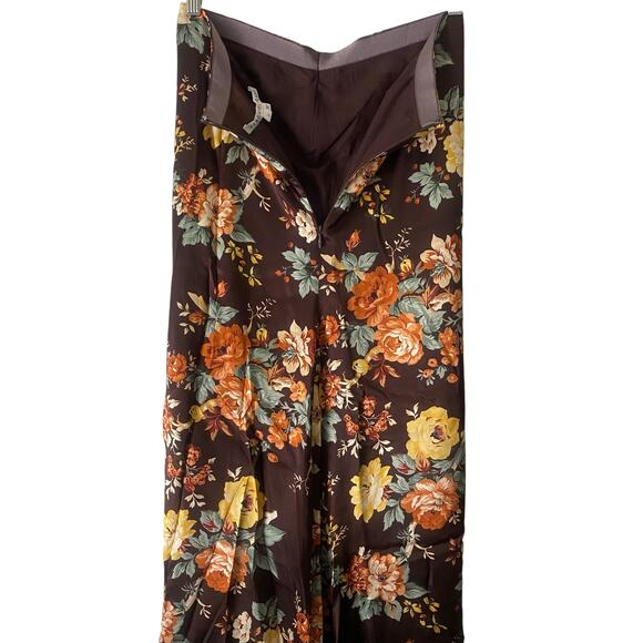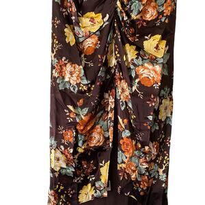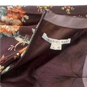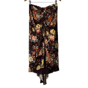 Veronica Beard Pixie Floral Ruched Silk Midi Skirt US 6 Brown Roses Cocktail