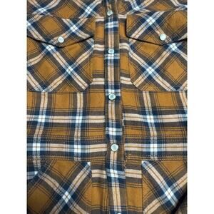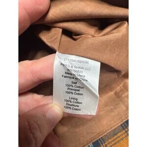 Veronica Beard shirt dress in size 0. Features a bold plaid pattern in orange, black, and white, long sleeves, and a classic button‑down design. Comes with two front pockets for a functional, laid‑back vibe. Made from 100% cotton for a breathable and comfortable fit. Chic, versatile, and perfect for layering or wearing on its own