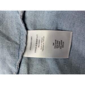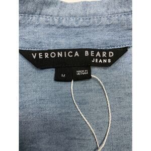 Veronica Beard 'Porta' Blue Lyocell Smocked Chambray Button-Front Shirt Size M: point collar, snap button front, elbow sleeves.