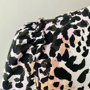 Veronica Beard Ramona Leopard Silk Blend V-Neck 3/4 Sleeve Top Size 2