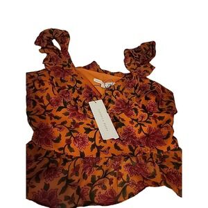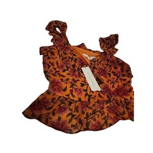 Veronica Beard Randa Top in Hot Orange Multi Floral Size 10 Silk $378