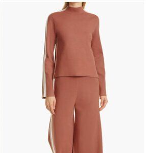 Veronica Beard Retha Sweater Terracotta Mock Neck Side Stripe