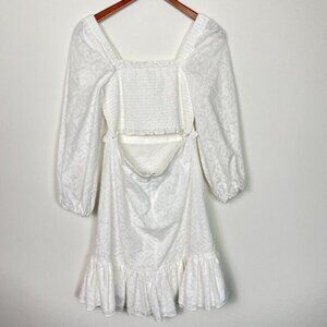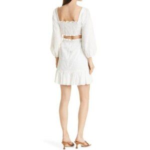 Veronica Beard Revolve Denise Smocked Long Sleeve Eyelet Mini Dress Off White 4