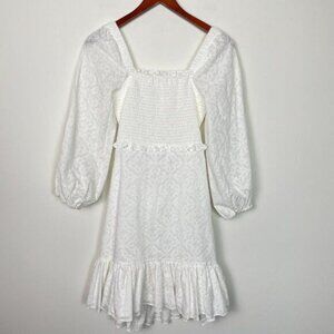 NWT Veronica Beard Denise Smocked Long Sleeve Eyelet Mini Dress Off White 4