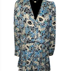 Veronica Beard Riggins Blue Floral 100% Silk Dress- size 8