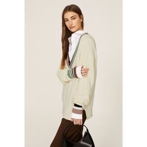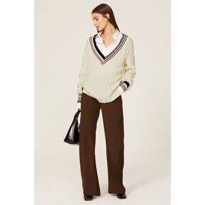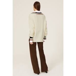 Off-white knit (60% Cotton, 30% Nylon, 10% Merino Wool). Sweater. V-neck. Long sleeves. Pull on. Imported.