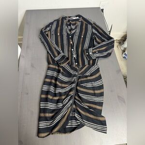 Veronica Beard Ruched Emory Striped Shirt Dress