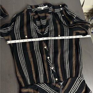 This is a Veronica Beard Black Striped Emory Mini Dress