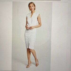 Veronica Beard Ruched Shirt Dress Womens Size 8 Cotton Midi contemporary White