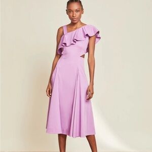 Veronica Beard Ruffle Beilla One-Shoulder Vivid Orchid Midi Dress sz 6