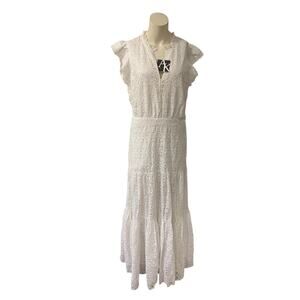 Veronica Beard Ruffle Cotton Eyelet Maxi Dress NWT NEW White Size 10