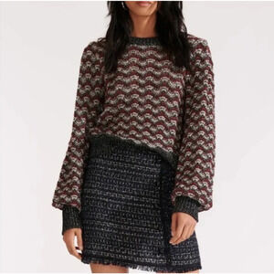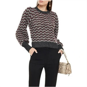 Veronica Beard Ruth Crew Neck Sweater XS Alpaca Red Pink Gray Silver Academia