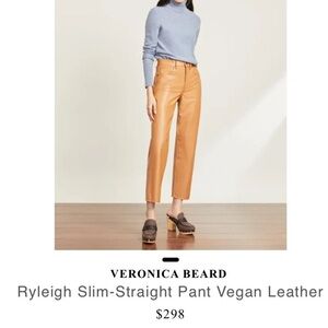 Veronica Beard Ryleigh Slim Straight Vegan Leather Pants Faux Leather Jeans