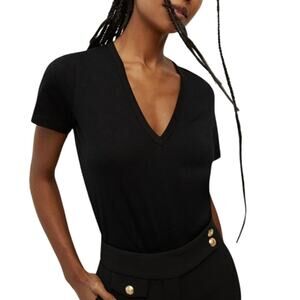 Veronica Beard S Cindy V Neck Tee Black Short Sleeves 100% Pima Cotton