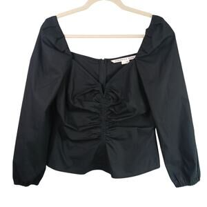 Veronica Beard SZ 6 Zhou Long Sleeve Ruched Blouson Top Black 31194