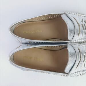 Veronica Beard SZ 7 Woven Penny Loafer In Silver