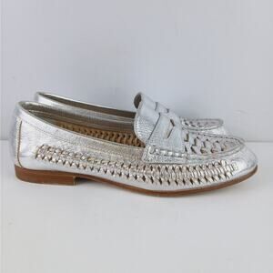 Veronica Beard SZ 7 Woven Penny Loafer In Silver