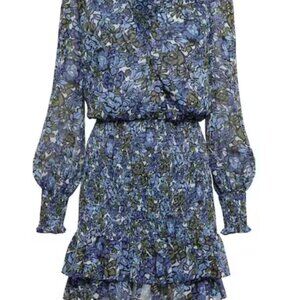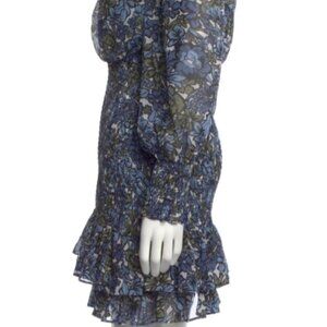 Veronica Beard Saera Blue Multi Floral V-neck Long Sleeves Mini Dress XS $495
