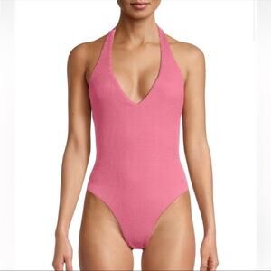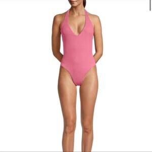 Veronica Beard Salis swimsuit one piece pink textured deep V NWT