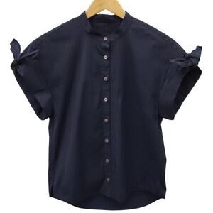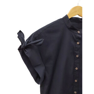 Veronica Beard Sanaa Tie Detailed Cotton Blend Poplin Shirt Black Size 2, button front, cotton blend, tie detail sleeves